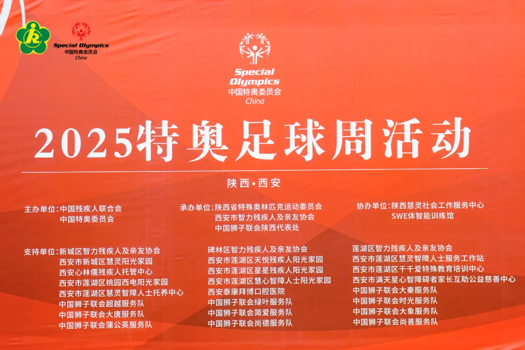 2025 年 9 月 25 日,由中国残疾人联合会、中国特奥委员会联合主办,陕西省特殊奥林匹克运动委员会、西安市智力残疾人及亲友协会、中国狮子联会陕西代表处共同承办,陕西慧灵社会工作服务中心、SWE 体智能训练馆协办的 2025 特奥足球周活动,在西安新城区天空足球场盛大开幕。西安市莲湖区千千爱特殊教育培训中心与来自全省的其他14家智力残疾人及亲友协会、社会组织和省市残联的相关人员共计四百余人参与其中,他们将以足球为载体,生动诠释 “勇敢尝试、争取胜利” 的特奥精神,在绿茵场上书写属于自己的热血篇章。