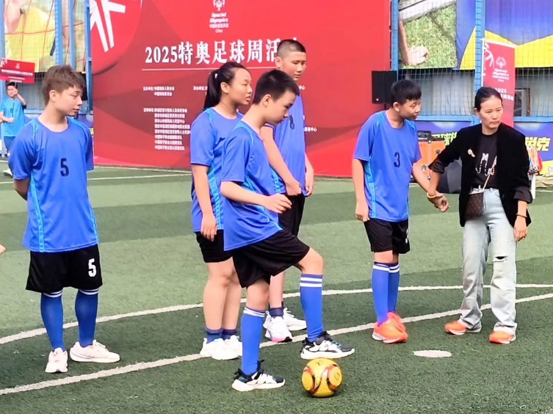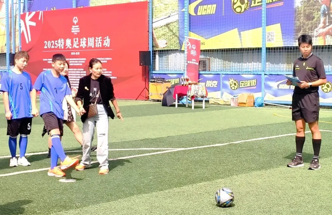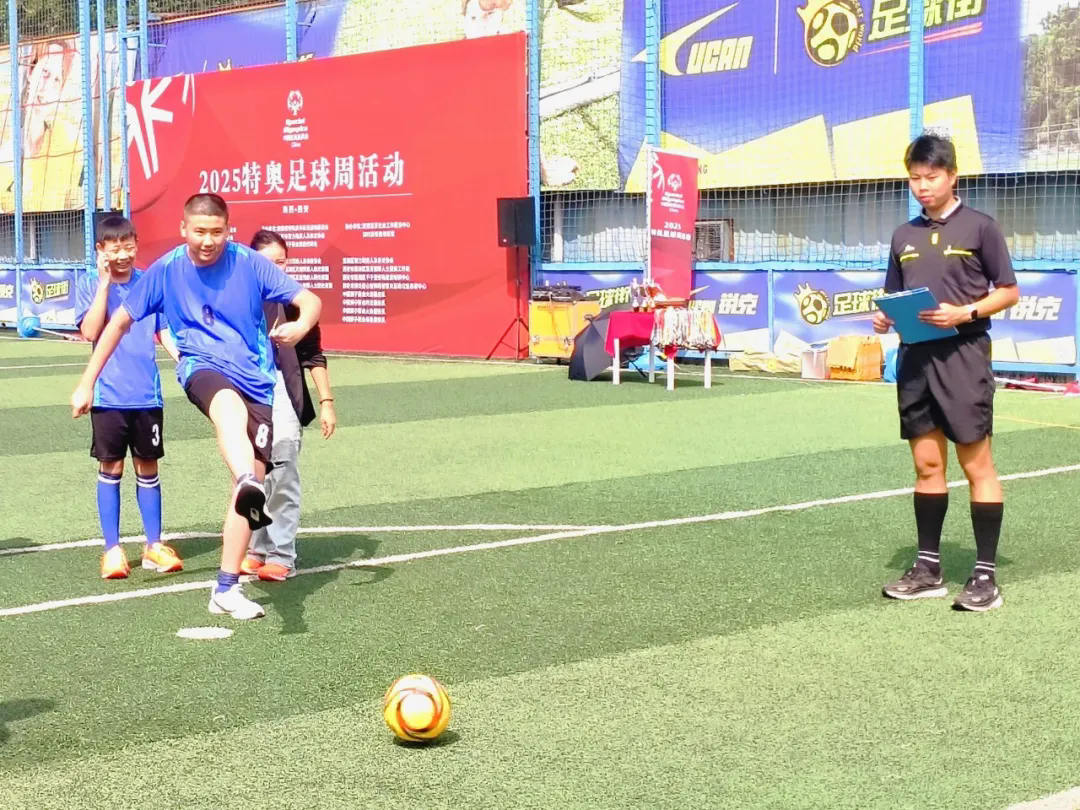 针对特奥运动员的需求,活动还设置了足球入门学习个人挑战赛。专业教练从基础的颠球、传球、射门技巧入手,耐心细致地为运动员讲解动作要领,手把手纠正姿势。运动员们认真倾听、反复练习,即便偶尔失误也不气馁,在一次次尝试中突破自我。