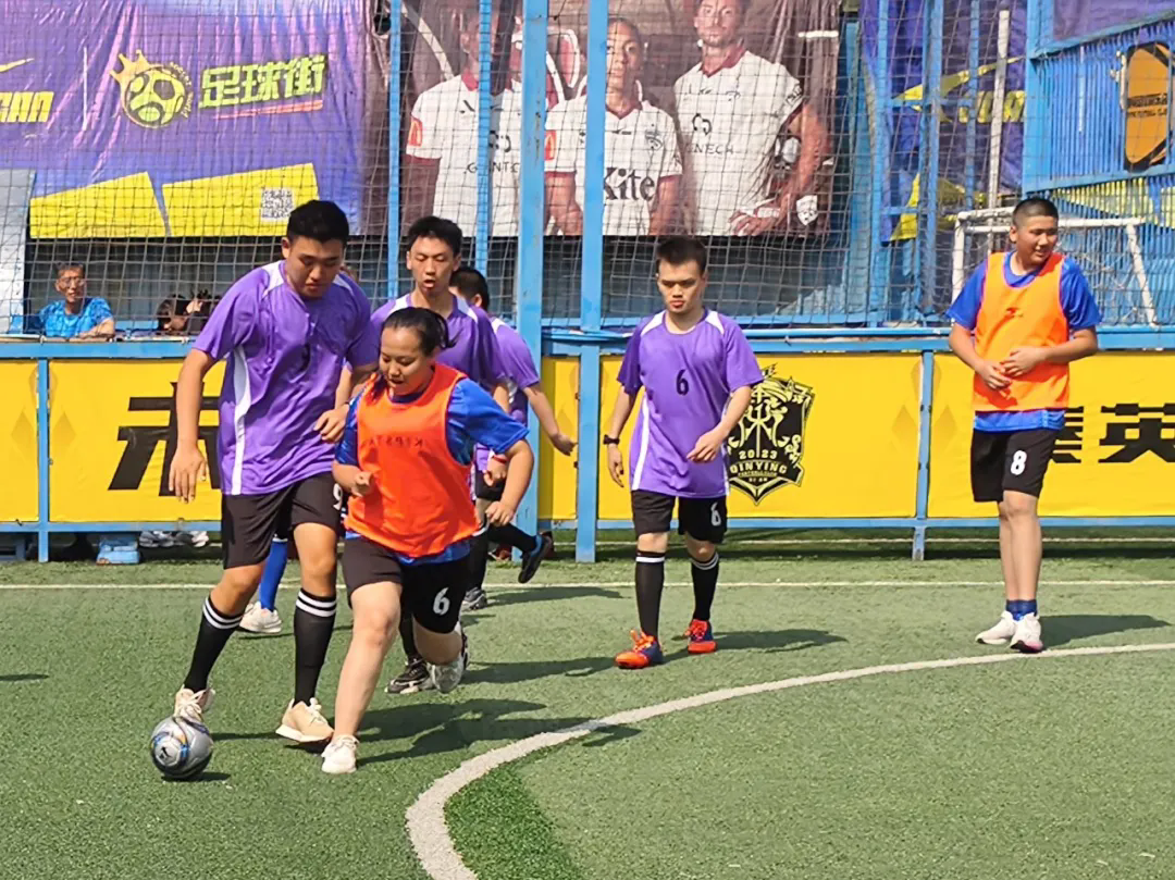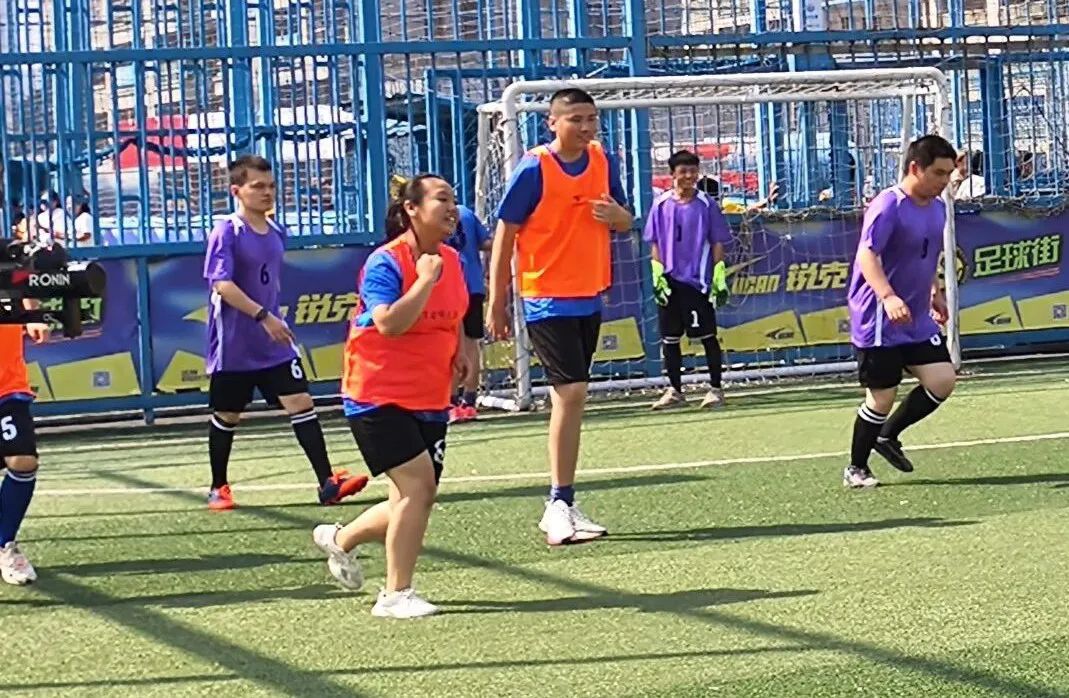本次特奥足球周精心设计了四大核心环节,兼顾竞技性、趣味性与实用性,让每一位运动员都能在参与中收获成长与快乐。在特奥5人制融合足球环节,健全人足球爱好者(融合队员)与特奥运动员组成混合战队,并肩作战。赛场上,大家相互传球、默契配合,没有年龄与能力的差异,只有对足球的共同热爱。