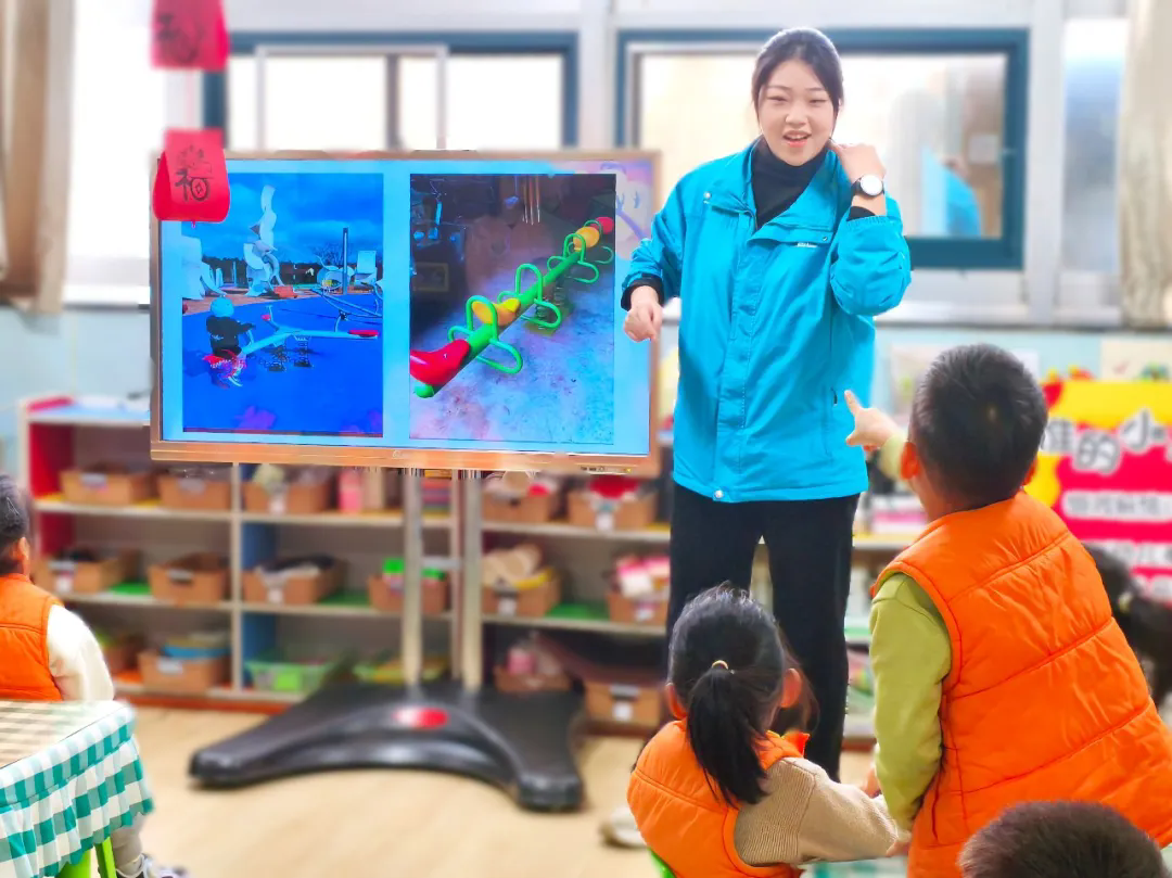 趣味导入:跷跷板的奇妙世界 热身结束后,张老师通过一体机向孩子们展示了各式各样的跷跷板图片与视频——从传统的公园跷跷板,到造型新颖的动物跷跷板,再到创意十足的多人跷跷板。