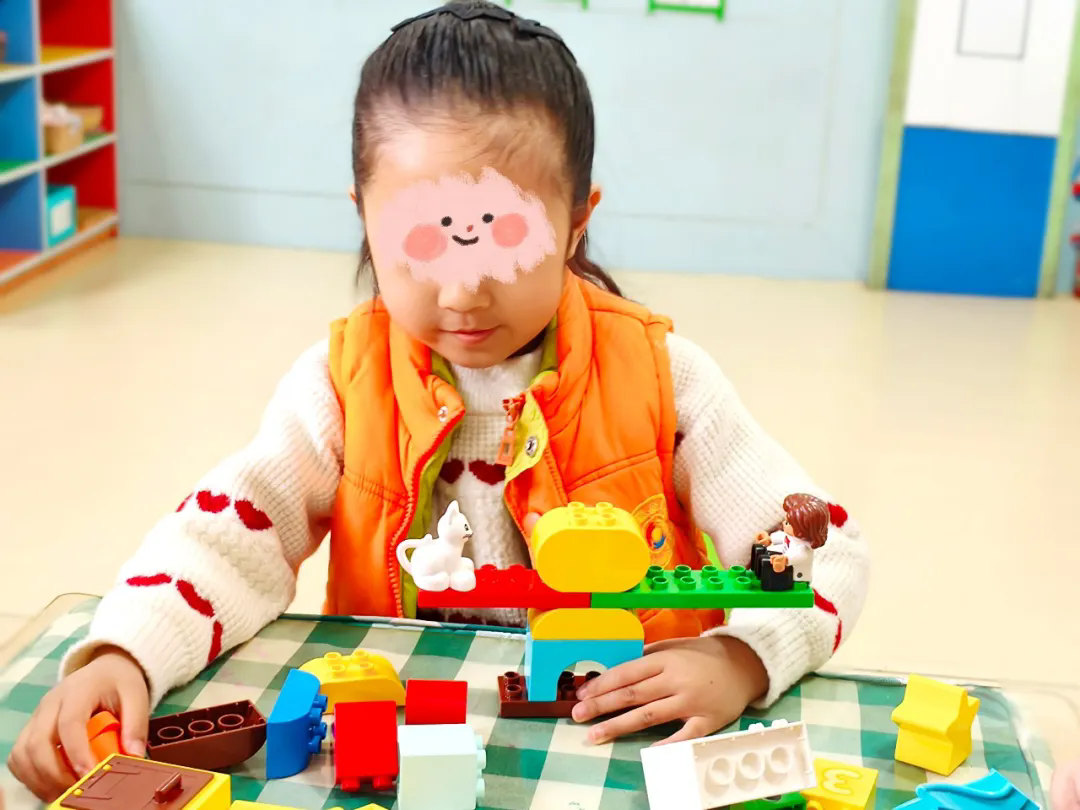 有的孩子全神贯注地搭建着底座,小脸上写满认真;有的孩子细心研究着座椅与底座的拼接,尝试用不同大小的积木实现更灵活的升降效果;更有孩子展开天马行空的想象,在跷跷板两端搭建起滑梯与秋千的组合,创造出一座“多功能游乐跷跷板”。