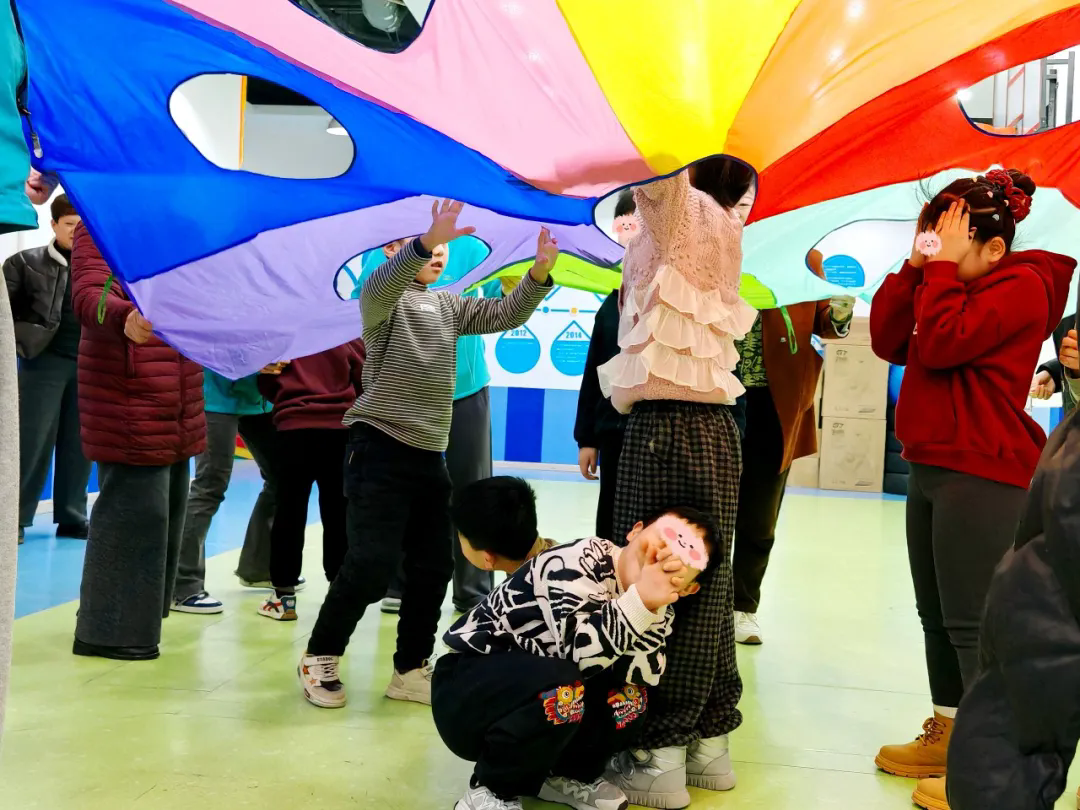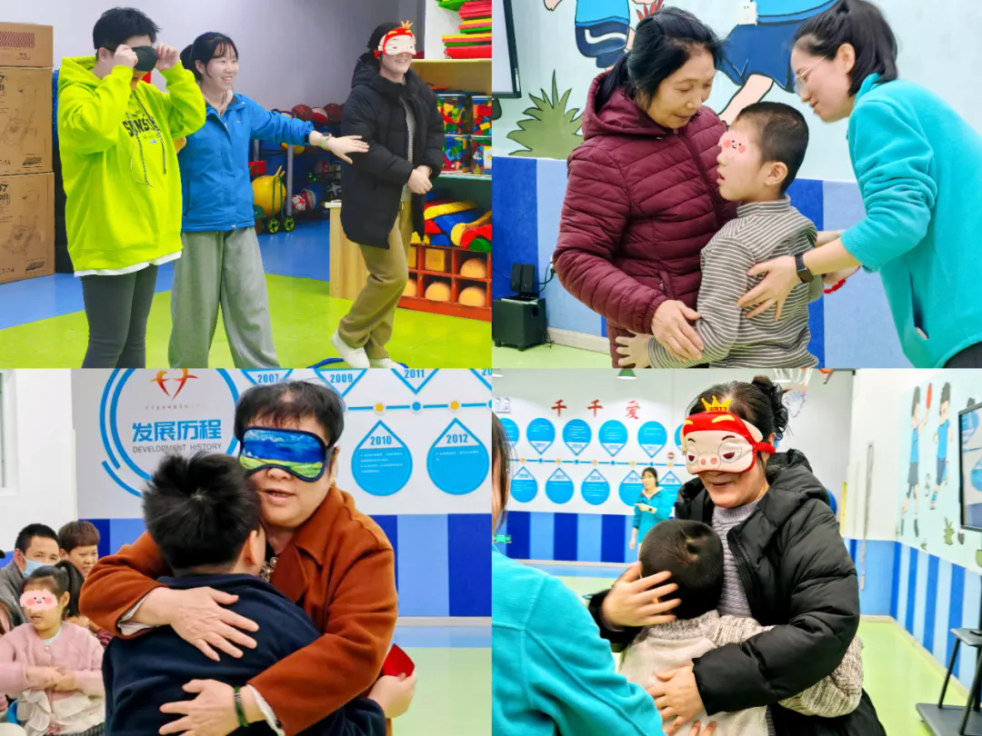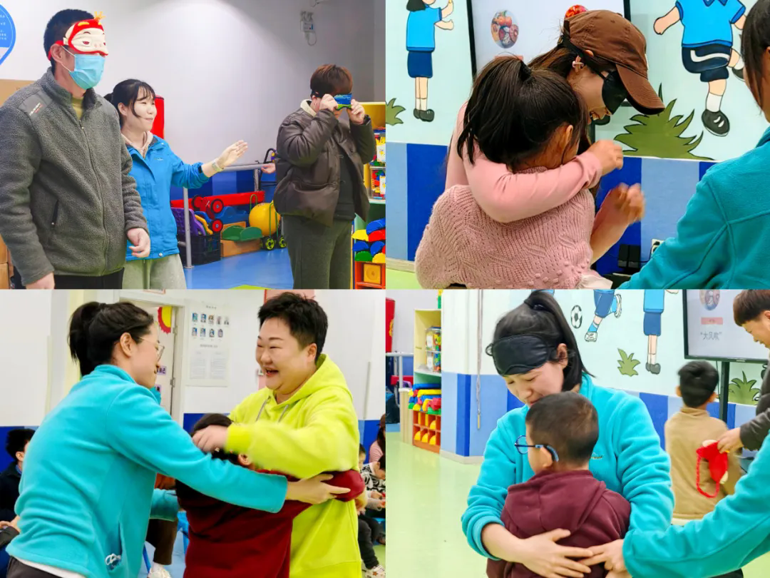 而在“蒙眼找孩子”环节,家长们蒙上眼睛,凭借声音去寻找孩子,再用触摸来辨认自己的孩子,当指尖划过熟悉的轮廓的那一刻,家长与孩子瞬间相拥在一起。游戏不仅带来了欢乐,更让家长在互动中近距离观察、感受孩子独特的反应与参与方式,看见了那些在日常忙碌中可能被忽略的细微成长。