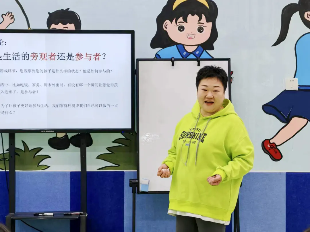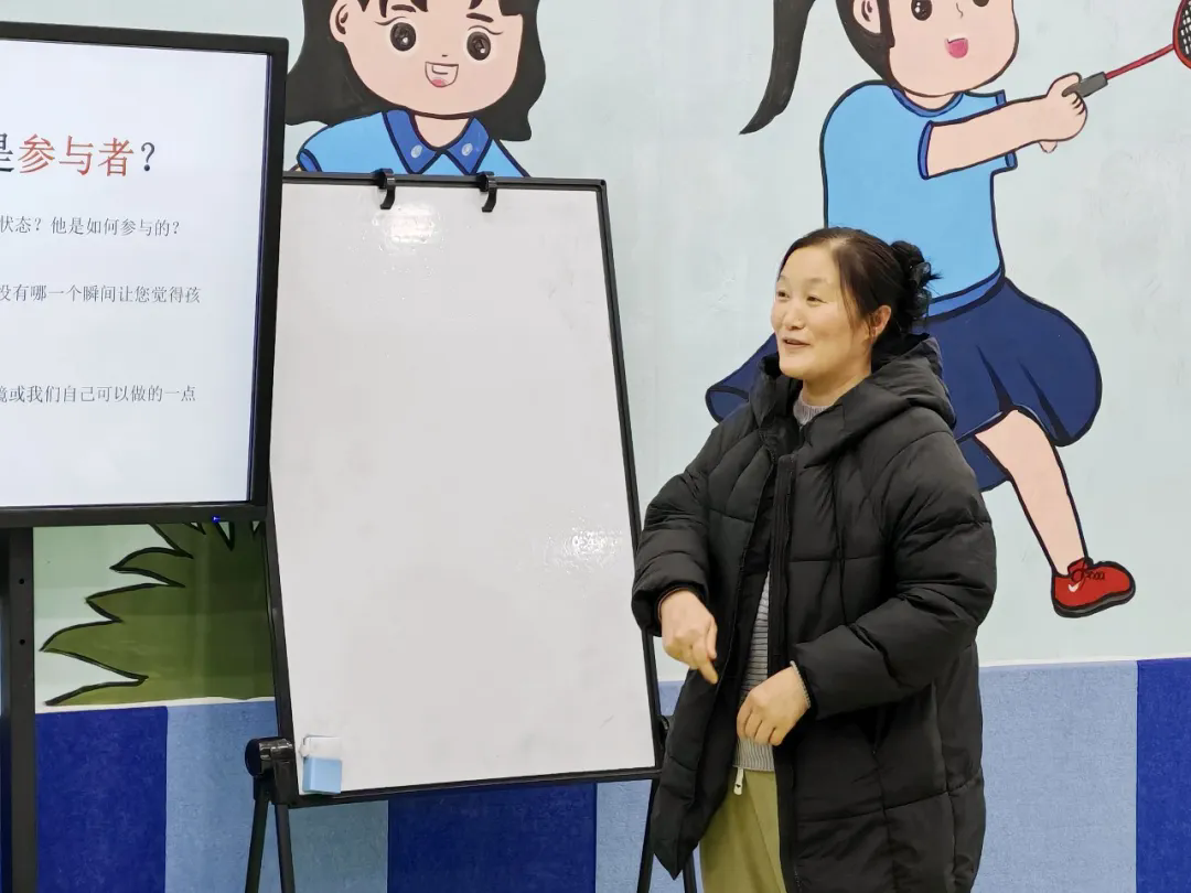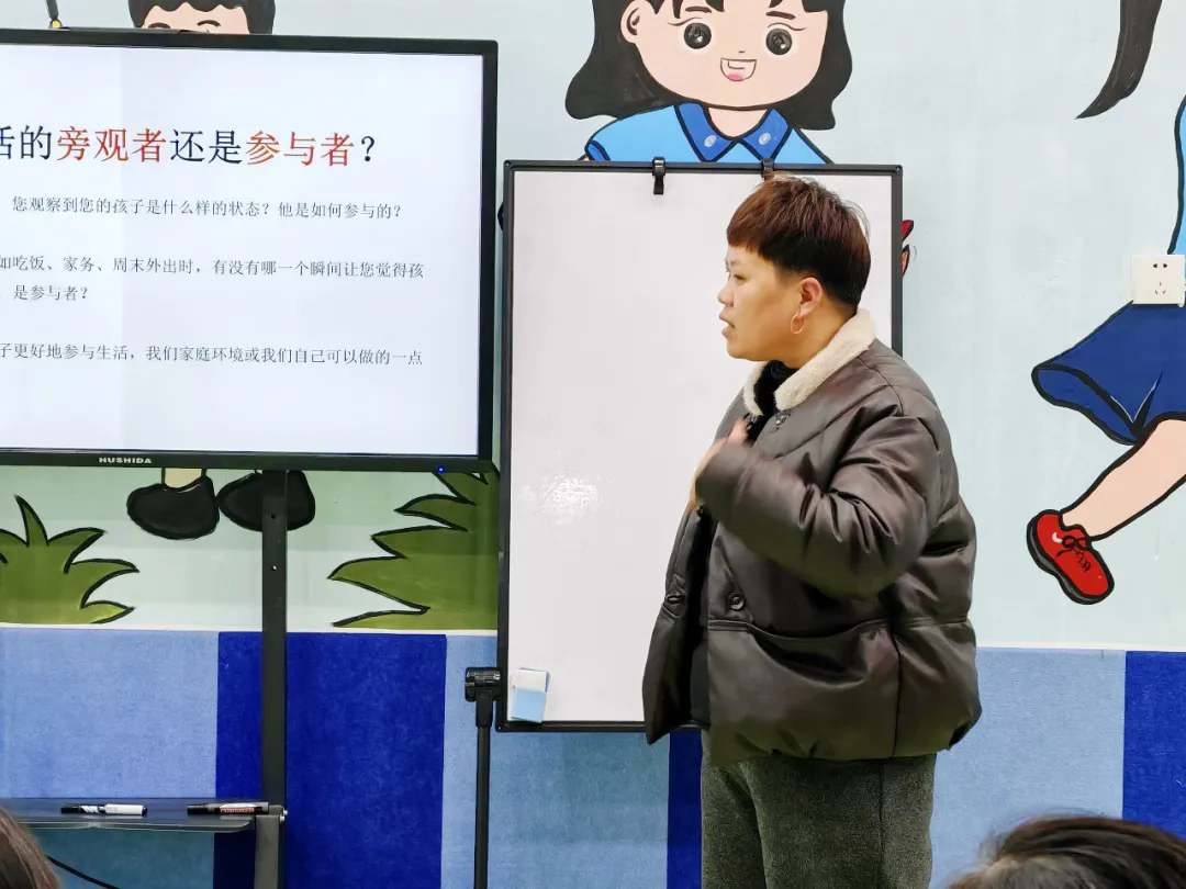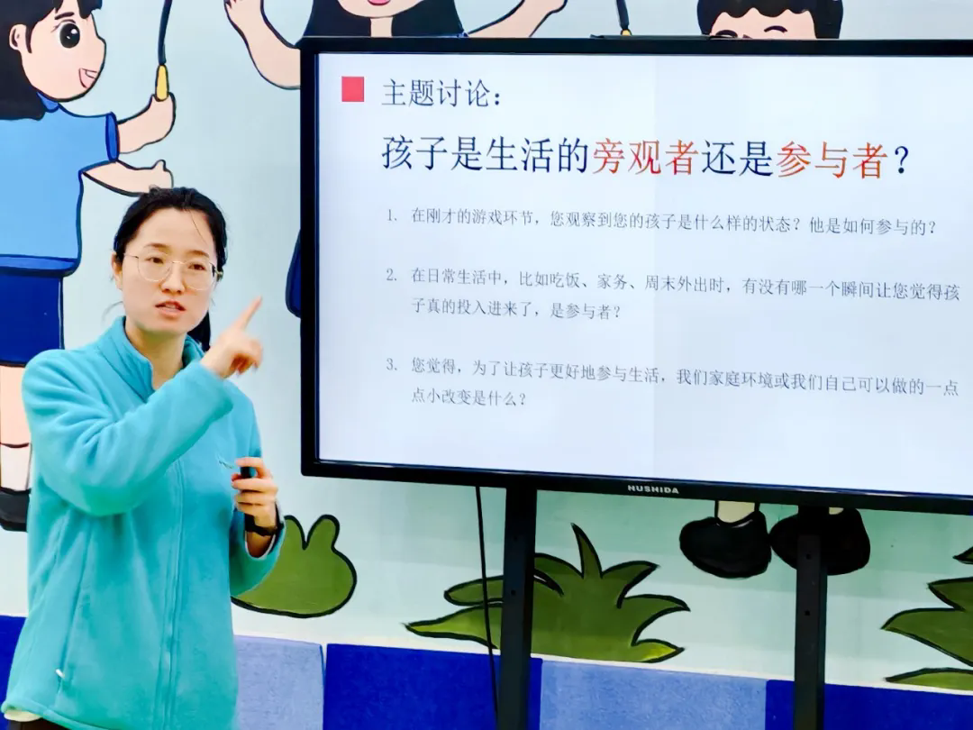 深度对话·智慧共享游戏环节在温馨的氛围中暂告一段落。郑老师引导家长们将刚刚游戏中的观察化为思考的起点,大家共同聚焦于一个核心议题:我们的孩子是生活的旁观者还是参与者?围绕这一主题,讨论从三个方面展开:从游戏中孩子的即时表现,到日常生活的真实场景,再到面向未来的积极改变。每一个话题都像一把钥匙,帮助家长们打开理解孩子独特世界的大门。