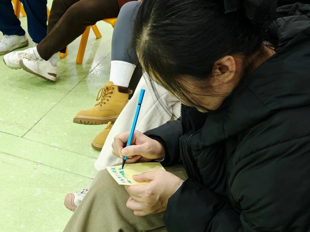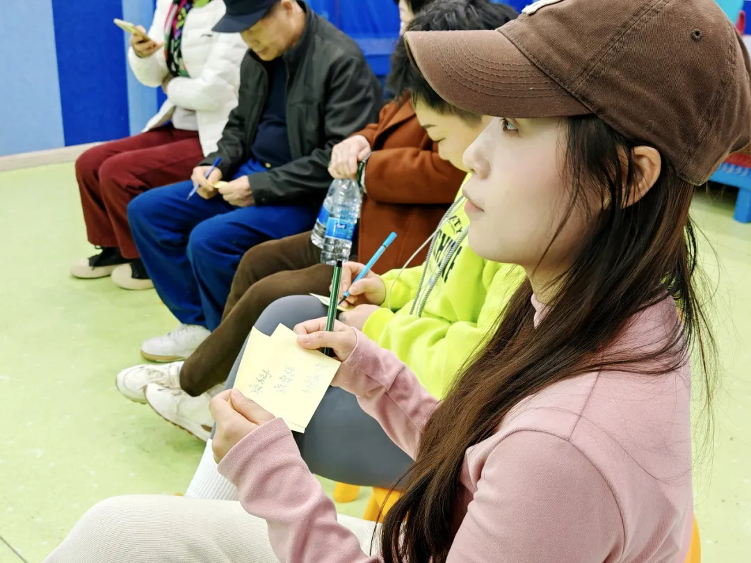 话题三:您觉得,为了让孩子更好地参与生活,我们家庭环境或我们自己可以做的一点点小改变是什么?这是一个向内审视、指向行动的提问。每一位家长都安静下来,在发放的小纸条上,写下了自己最想承诺做出的那个“一点点改变”。这些纸条随后被一一贴在黑板上,汇聚成一片真诚而有力的“心愿墙”。