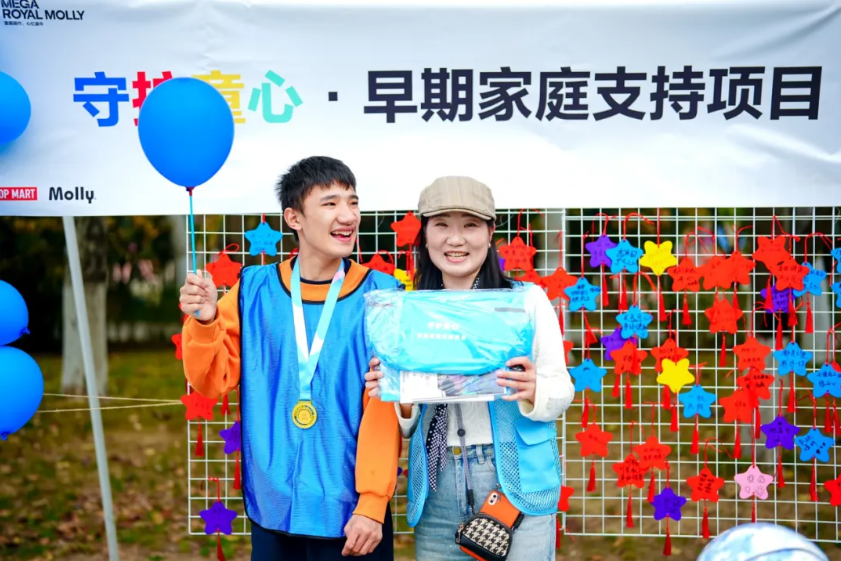 早期支持:为家庭赋能,为成长护航 在泡泡玛特的捐赠支持下,由深圳壹基金公益基金会发起、西安市莲湖区千千爱特殊教育培训中心执行的壹基金海洋天堂计划-守护童心·早期家庭支持项目,活动现场进行了资源包发放仪式,为2-9岁心智障碍儿童家庭代表送上科学支持与温暖陪伴。该项目通过对2-9岁孤独症及发育障碍儿童家庭开展赋能陪伴,协助家长应对养育过程中的各种挑战,帮助孩子尽早获得优质干预,最大化促进发展潜能。