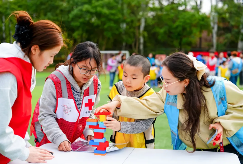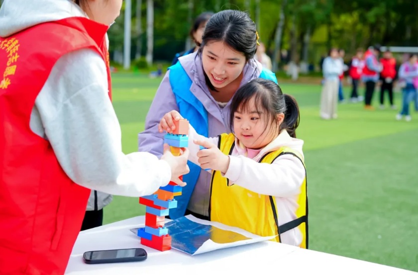 赛场上,一对组合走得格外缓慢。普通小朋友明显放慢了脚步,嘴里轻声数着“一二一”,带着身边的特殊伙伴调整节奏。中途积木晃了一下,两人同时停住,对视一眼,深吸一口气,稳住平板继续前行。当他们终于将积木安全送达终点时,两个小家伙激动地抱在了一起,旁边的家长和志愿者也忍不住鼓起掌来。