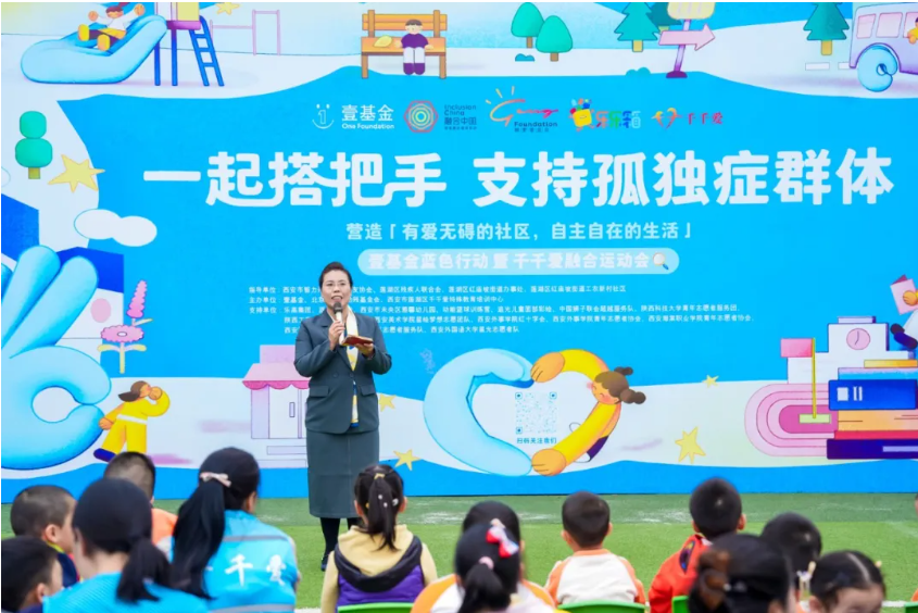 2026年3月28日上午,由西安市智力残疾人及亲友协会、莲湖区残疾人联合会、莲湖区红庙坡街道办事处、莲湖区工农新村社区指导,壹基金、北京市晓更助残基金会、西安市莲湖区千千爱特殊教育培训中心共同主办的“融在一起,乐动未来——2026年世界孤独症日融合运动会”在西安城市运动公园温暖启幕。来自西安市的孤独症儿童家庭、普通儿童家庭、志愿者团队、爱心企业代表等300余人齐聚一堂,在春日阳光下共同参与这场充满欢笑与温度的融合盛会。