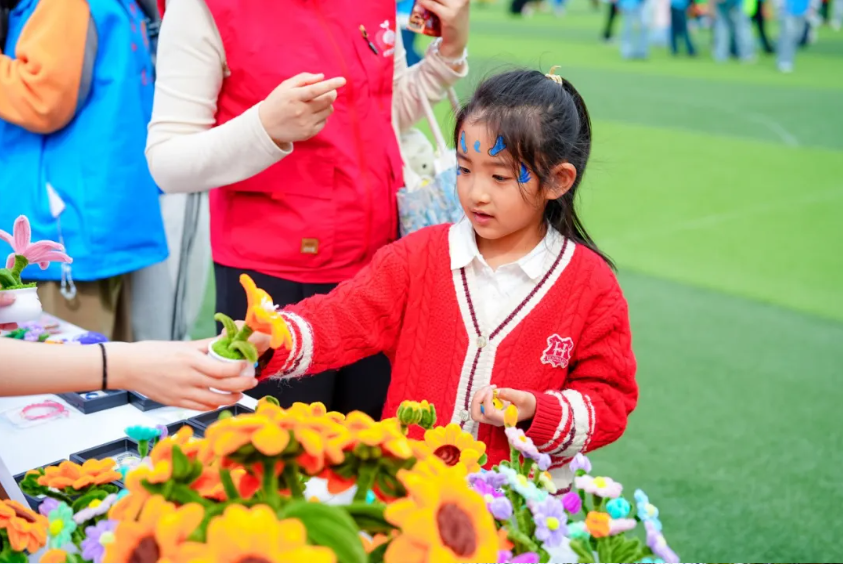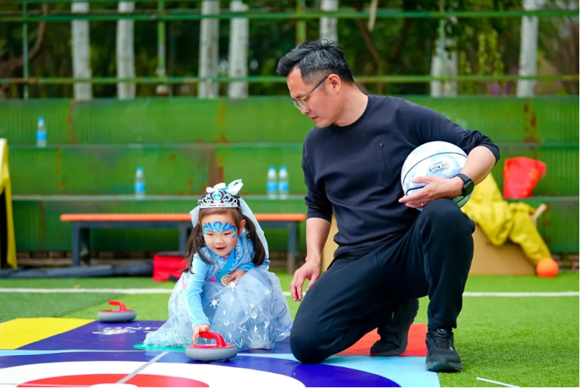 自由打卡:在游戏中遇见快乐 集体比赛之外,活动现场还化身为一片自由探索的欢乐天地。足球定点射门、冰壶挑战、乐高拼搭、家长加油站及儿童面部彩绘等自由打卡项目错落分布,孩子们每完成一项就能盖上一个彩色印章。集两个印章即可兑换盲盒小礼品,这份小小的期待,让每个孩子都跑得满头大汗却笑容灿烂。