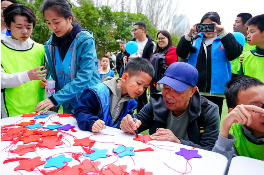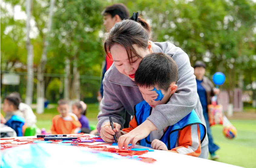 “第一次看到孩子主动去拉小朋友的手,我哭了。”“以后每周至少带他出去跑两次。”“运动让他更自信了,我要坚持下去。”……一张张卡片被贴在画架上,汇聚成一面温暖的“心声墙”。几名家长在等待孩子面部彩绘时,聊起刚刚比赛中的点滴,有人提议:“以后每周末我们带孩子一起来公园跑步吧,互相监督!”大家纷纷响应,现场结成了好几个“亲子跑步搭子”。这不仅是一次情感的交流,更是一次对家长成长的深度关注——通过运动增进亲子关系,将运动融入日常生活,让陪伴更有质量、更有力量。