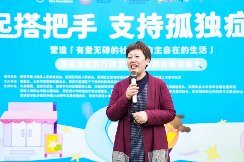 西安市智力残疾人及亲友协会副主席崔妮在开幕式上致辞。她表示,孤独症群体需要社会各界的理解、接纳与支持,每一次温暖的关注、每一次真诚的陪伴,都是推动融合的重要力量。她向所有关心和支持孤独症事业的爱心人士、志愿者及公益伙伴表示衷心感谢,并呼吁更多人加入到关爱行动中来,共同营造包容、友好的社会环境。