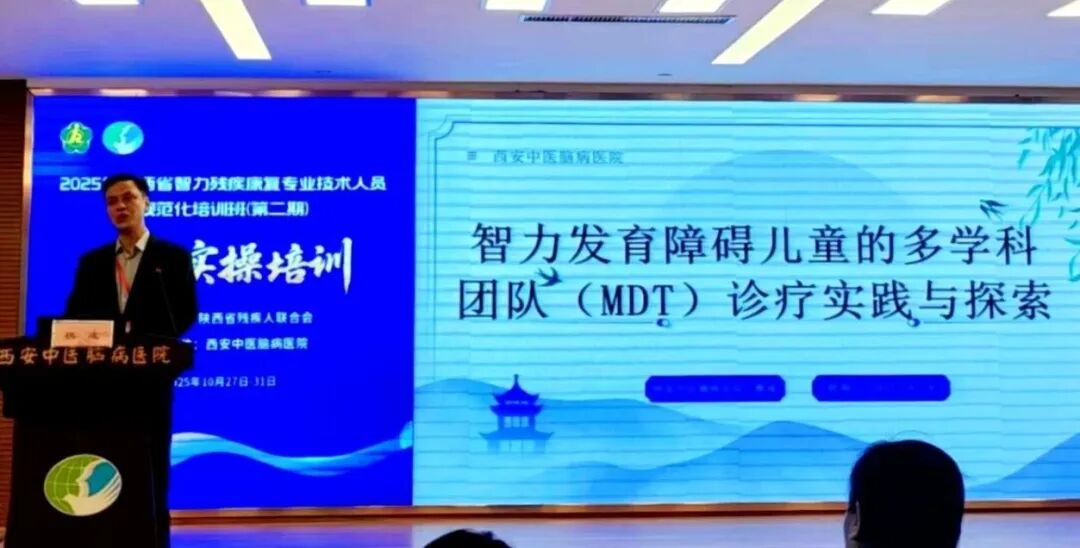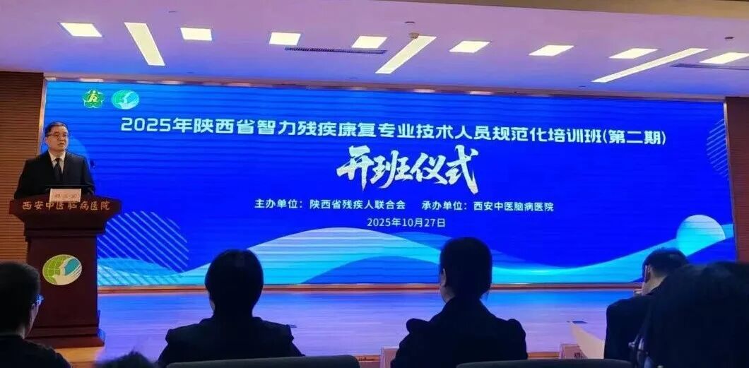 为加强全省智力残疾儿童康复人才队伍建设,提升康复服务规范化水平,促进儿童全面发展,2025年10月27日,由陕西省残疾人联合会主办、西安中医脑病医院承办的“2025年陕西省智力残疾康复专业技术人员规范化培训班(第二期)”在西安中医脑病医院成功召开。我校郑老师全程参与了此次系统化培训,并圆满完成了所有培训课程,顺利结业。