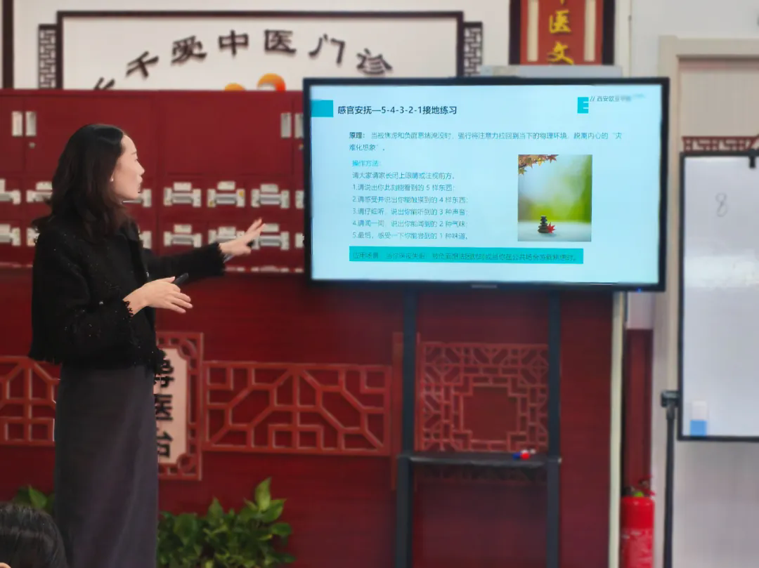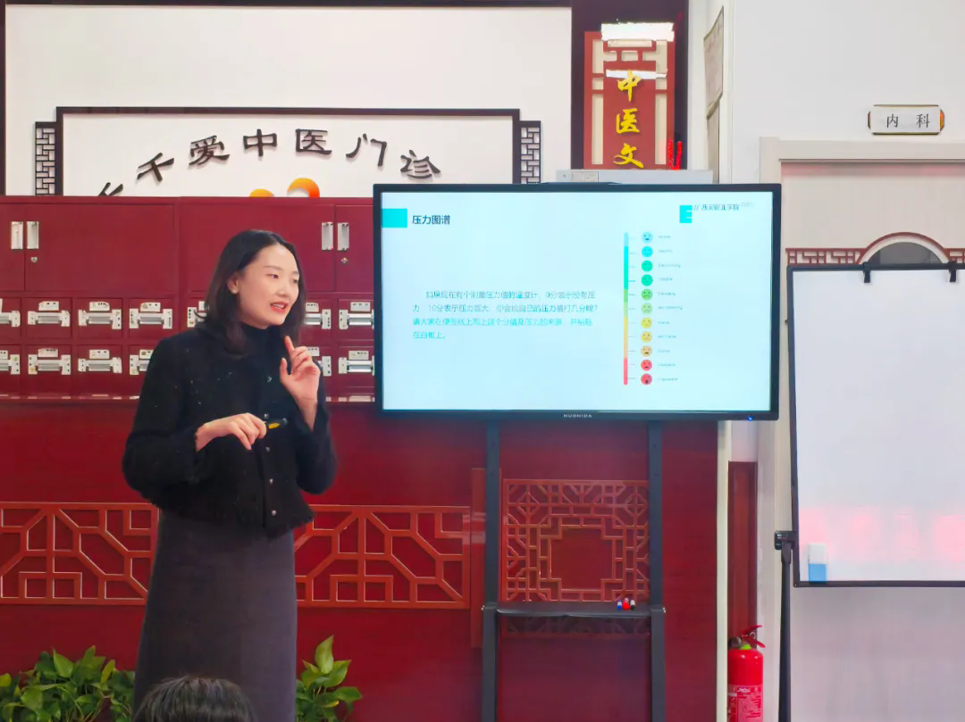 “解压有方” 理论结合实践,万老师现场分享了5个简单易行的解压实操小技巧。从呼吸调节法到身体解压法,每一个方法都像一把钥匙,帮助大家在学习与练习中,寻找打开自身压力枷锁的那一把。