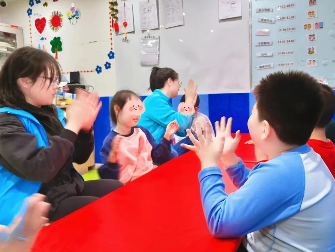 而今天,志愿者们再次如约而至。教室里、活动区内,随处可见他们耐心而专注的身影。在体能运动环节,他们轻柔鼓励、细心搀扶,陪伴孩子们进行简单的运动训练,欢声笑语中洋溢着活力的气息;在手工课堂上,他们化身巧手伙伴,引导孩子发挥创意,共同捏塑黏土、涂绘娃娃,每一件作品都凝聚着陪伴的温情与共创的喜悦。
