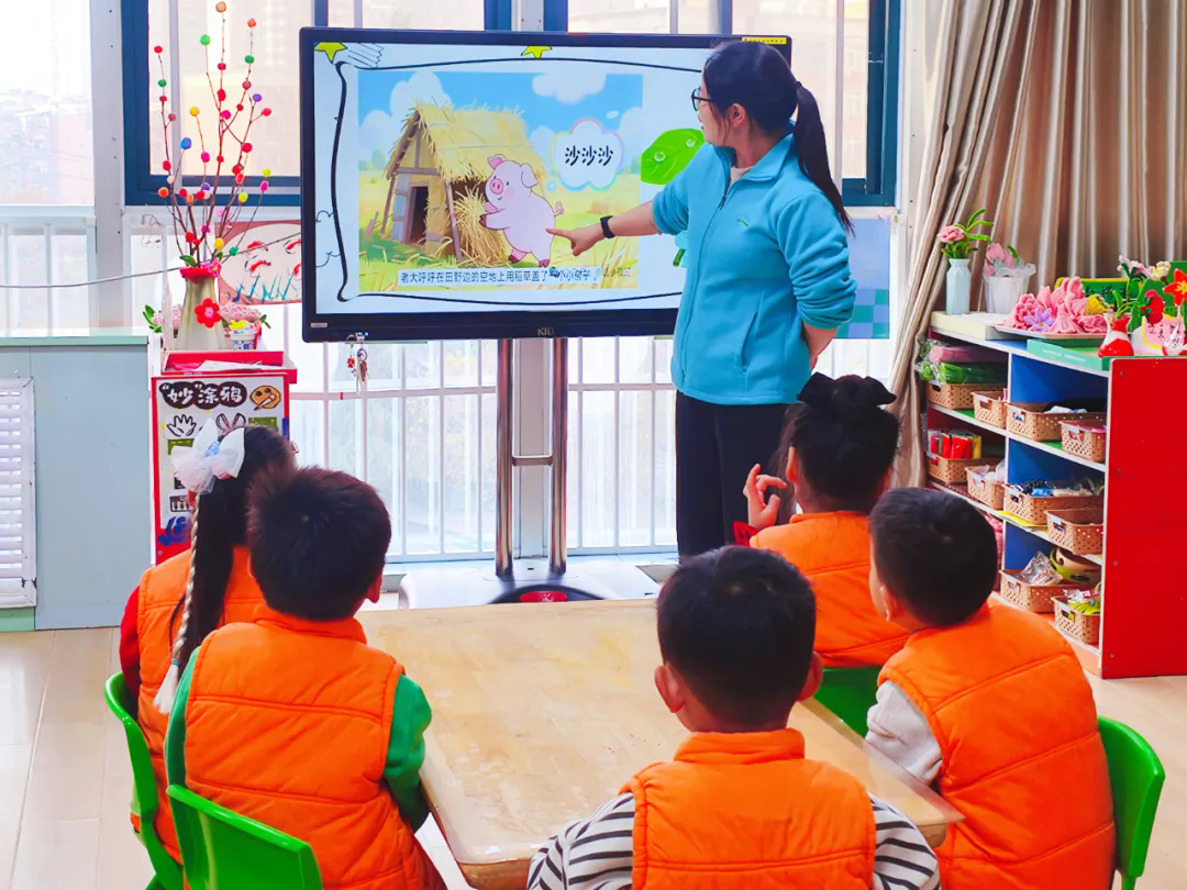 孩子们通过小组协作,将各自搭建的“家”相互连接、组合,共同规划并创建出一个完整的“社区”,并一起为社区命名、设计共享区域与功能,在合作中体验从个体创造到集体共建的过程。活动不仅锻炼了孩子们的动手能力与想象力,也促进了他们的团队协作意识与社会认知,在孩子们心中播下了爱、合作与归属感的种子。 故事启程:从三只小猪到家的构想 活动伊始,罗老师用亲切的声音问道:“大家都听过《三只小猪》的故事吗?”“听过!”孩子们清脆的回应让教室瞬间活跃起来。罗老师巧妙地从这个经典故事切入,与孩子们聊起了三只小猪长大后自己盖房子的情节。