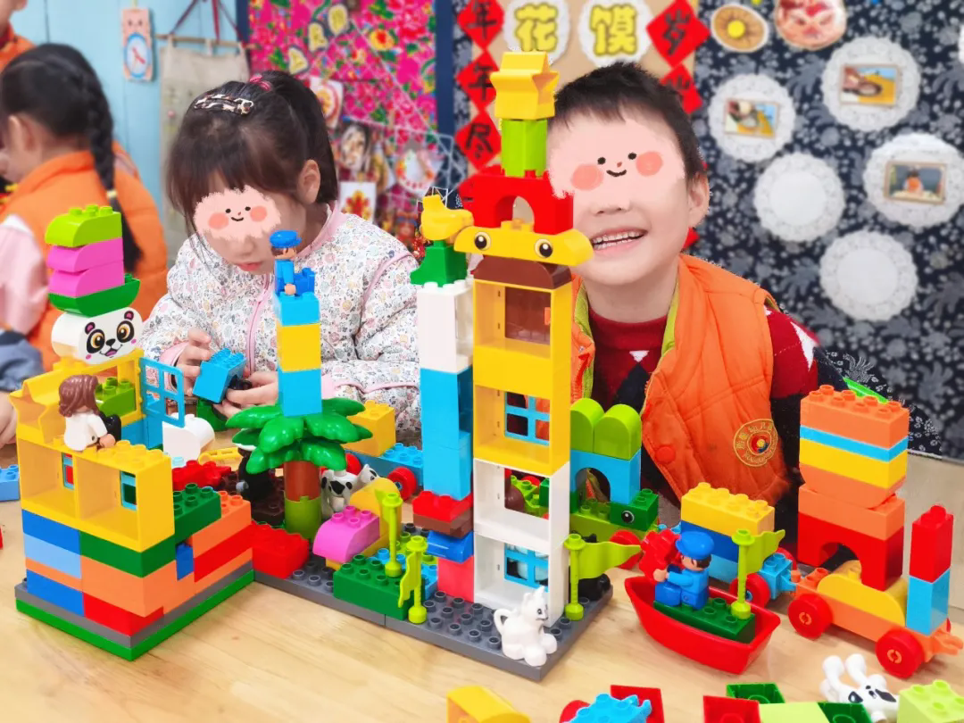 创意构建:搭建我独一无二的“家” 在明确了任务后,一双双小手便迫不及待地打开了五彩斑斓的乐乐箱。那一瞬间,积木的碰撞声与孩子们轻快的呼吸声交织在一起,仿佛奏响了创意诞生的序曲。孩子们迅速沉浸在自己的建造世界中,眼神专注而明亮,将天马行空的想象化为手中的现实。