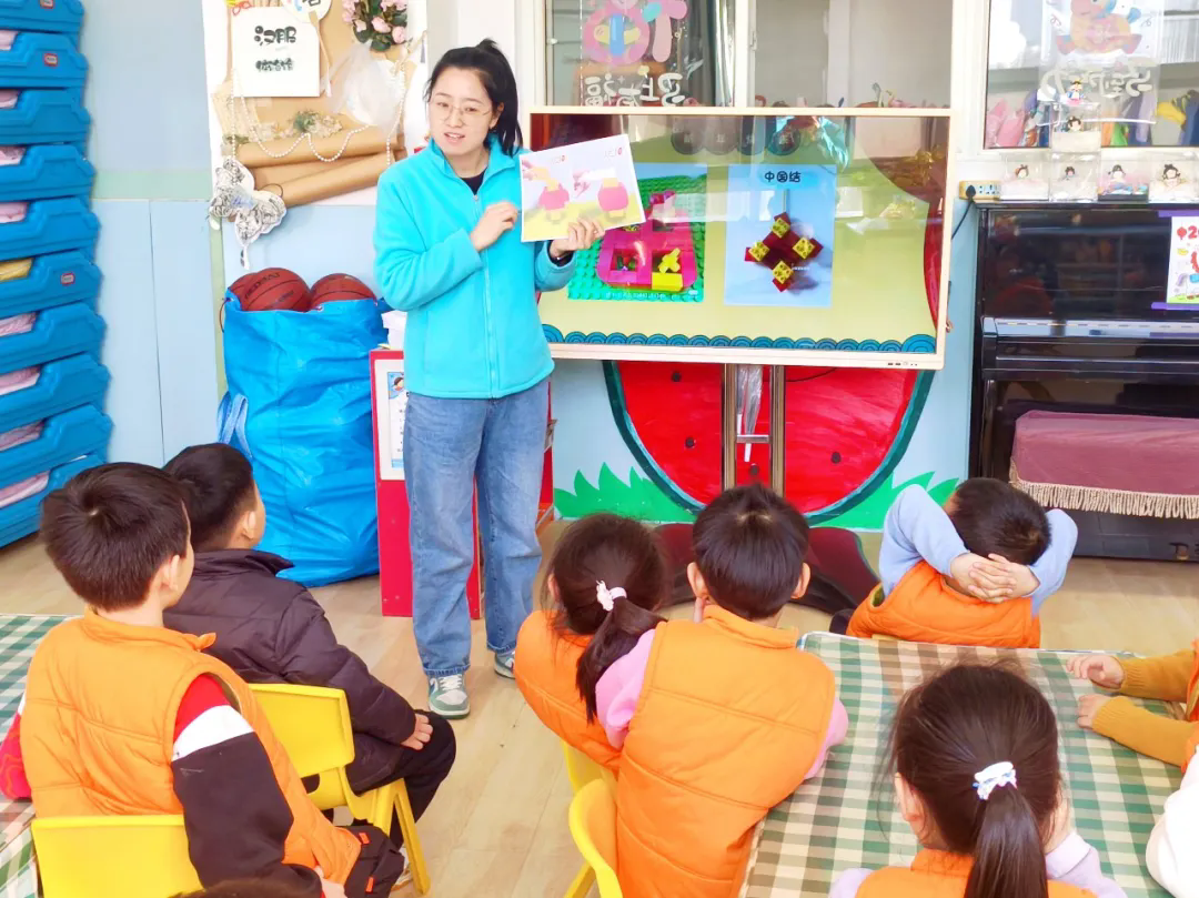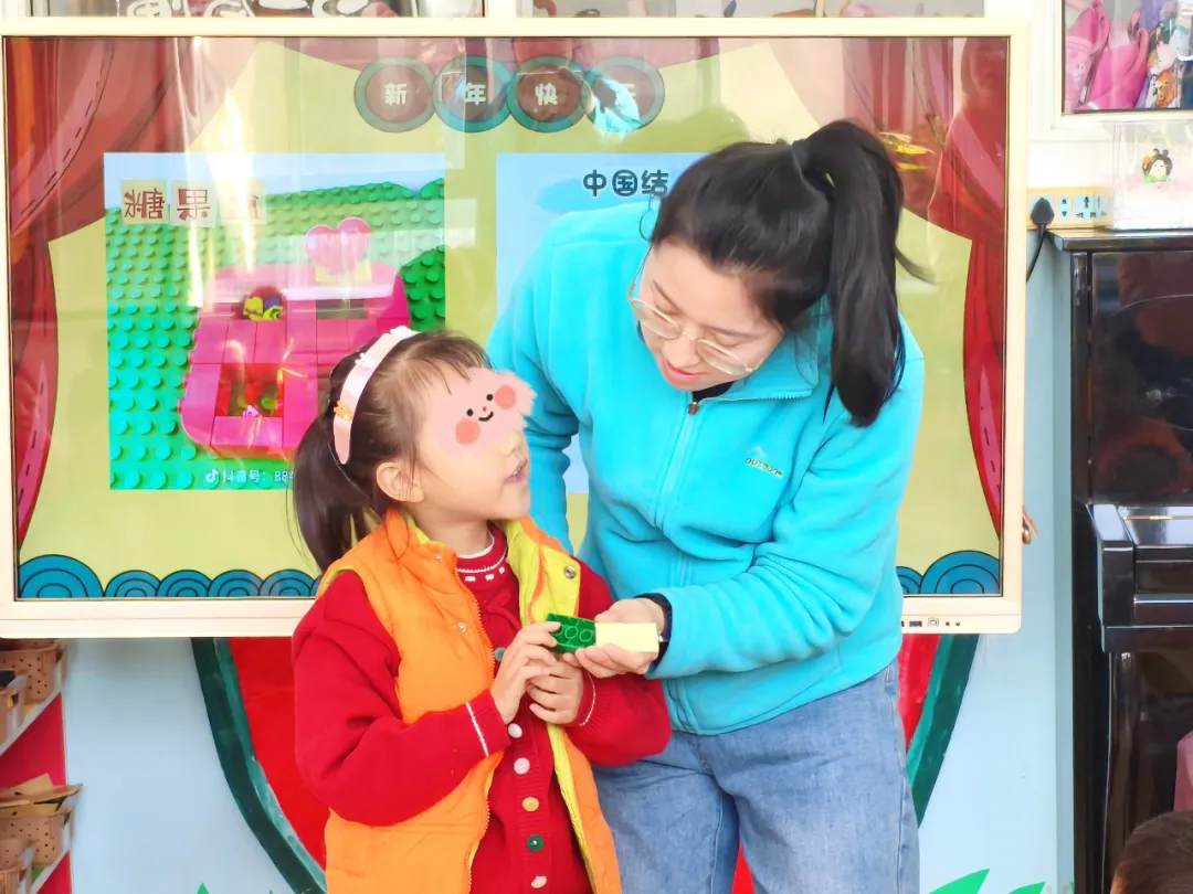 孩子们通过习俗知识问答,趣味抽签领取“小马”“福字”“中国结”等特色搭建任务。在合作共创中,用乐高积木将传统年俗转化为可触摸的作品,并送出“马到成功”“福气满满”等新年祝福。整场活动在欢笑、协作与真诚的祝愿中,生动展现了传统文化与创意交融的温暖场景,也让孩子们在动手协作、社交互动等能力上获得了愉快的锻炼与体验。 欢歌唱响,拉开新年序幕 活动在欢快的律动操《新年好》中正式启动。伴随着活泼跳跃的节奏,郑老师以充满感染力的动作引领着孩子们伸展手臂、摆动身体。孩子们迅速融入节奏,跟着音乐摆动身体,教室里顿时充满了清脆的笑声。短短几分钟的热身律动,不仅舒展了孩子们的身体,更点燃了全场的参与热情,为接下来的乐高创意活动营造出轻松愉悦的互动氛围。