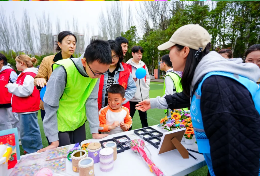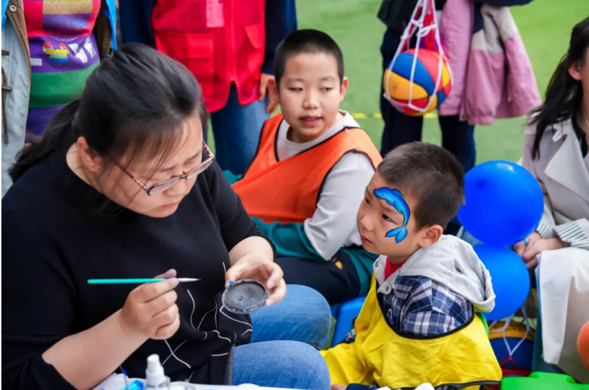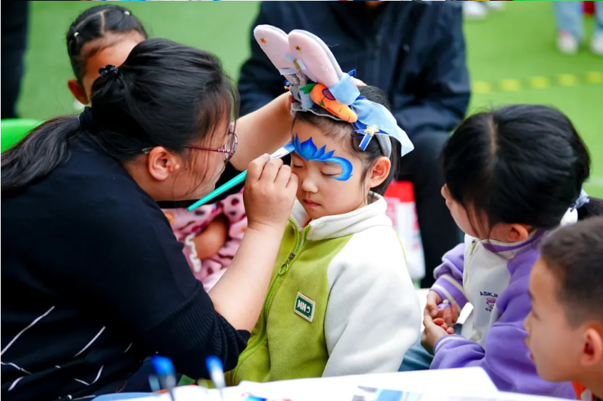 儿童面部彩绘——儿童面部彩绘区是最受孩子们欢迎的“打卡点”之一。志愿者手持彩绘笔,在孩子们的小脸蛋上轻轻勾勒。一笔一画间,一张张小脸变成了五彩斑斓的画布。旁边一个特殊小朋友原本有些抗拒,志愿者放慢动作,先在他手背上画了一朵小花儿,他好奇地摸了摸,笑了,然后主动仰起脸,让志愿者在脸颊上画了一条小鱼。
