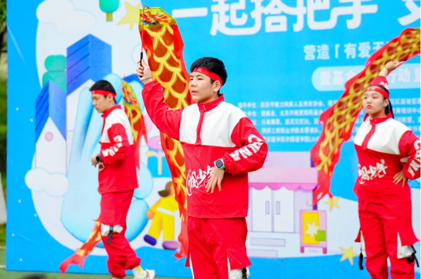 开幕式:龙腾球舞,点燃融合之光 上午9时,活动在气势恢宏的龙舞《舞跃中华》中拉开序幕。千千爱的孩子们身着红色表演服,在阳光下舞动着长龙,时而盘旋,时而腾跃,每一个动作都透着认真与自信。台下掌声不断——这份掌声里,有鼓励,更有看见。