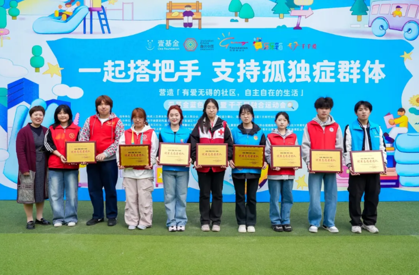 来自各大高校的志愿者团队获评“优秀志愿者团队”,并领取了志愿者证书。一位志愿者分享道:“第一次这么近距离接触孤独症孩子,我才发现他们和我想象的不一样。他们也会笑、也会跑、也会主动牵手。这次活动让我真正理解了什么是融合,也更坚定了我继续做志愿服务的决心。”