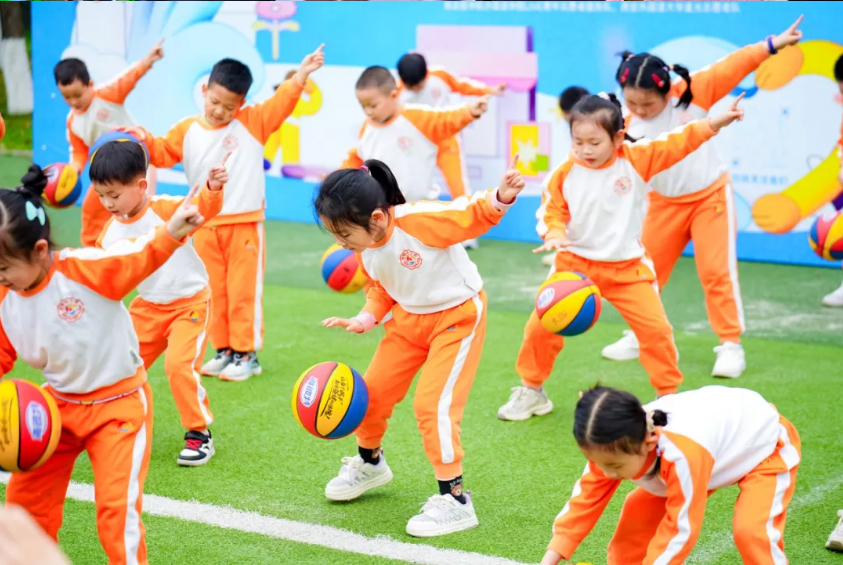 随后,雅馨幼儿园的孩子们带来花式篮球《中国威武》。伴随着激昂的音乐,小队员们熟练地拍球、转球、变换队形,小小篮球拍出了大大的梦想,孩子们活力四射的表演点燃了全场热情,不少观众也跟着节奏一起鼓掌欢呼。