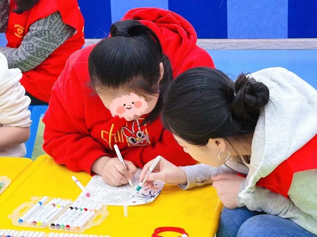 最令人期待的时刻到来了——绘画时间。志愿者们将提前准备好的“2026年小马驹”和“欢庆元旦”主题线稿分发到每个孩子手中。孩子们小心翼翼地挑选着自己喜欢的彩笔,眼神中满是专注与期待。